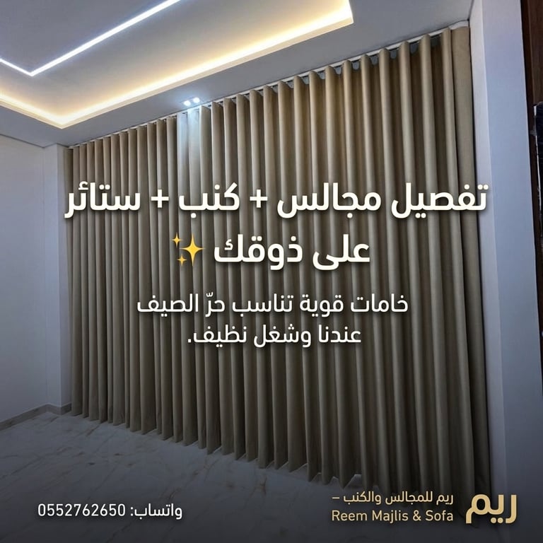 كنب، مجالس وستائر تفصيل تناسب شقق وفلل الرياض.