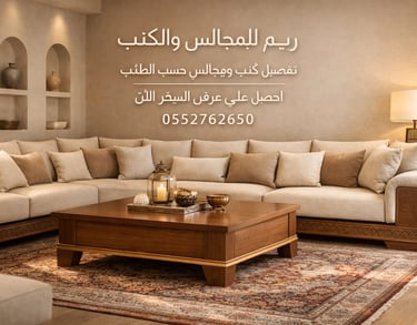 نقوم بتفصيل المجالس حسب الطلب بالرياض، مجالس عربية تقليدية ومجالس عصرية تناسب جميع المساحات مع التزام بالجودة ووقت التسليم.